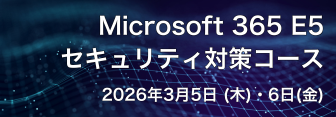 Microsoft 365 E3 で実現するセキュリティ対策ベストプラクティスコースと同じく防御面にフォーカスしていくMicrosoft 365 E5のトレーニングコースです。MDEの脆弱性の管理やMicrosoft Defender for Cloud Appsによるクラウド管理、Microsoft Purviewによるデータ保護などを含めて2日コースで提供します。