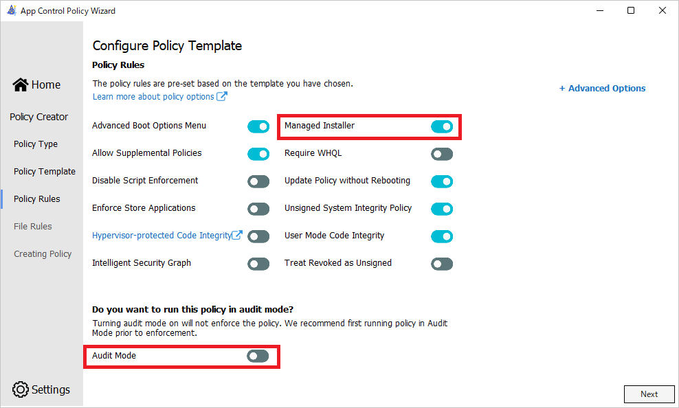 スタートメニューから App Control Policy Wizard を実行するとポリシー作成画面が登場します。Policy Creator をクリックして、